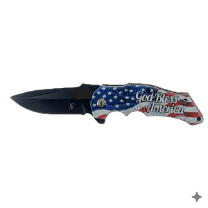 8″/ 3.25″ Blade Spring-Assisted Pocket Knife with God Bless America with Stars Design Handle with Pocket Clip, Sold in Units of 4