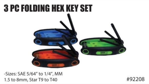 Sizes Included: SAE 5/64″ to 1/4″, Metric 1.5MM to 8MM, Star T9 to T40