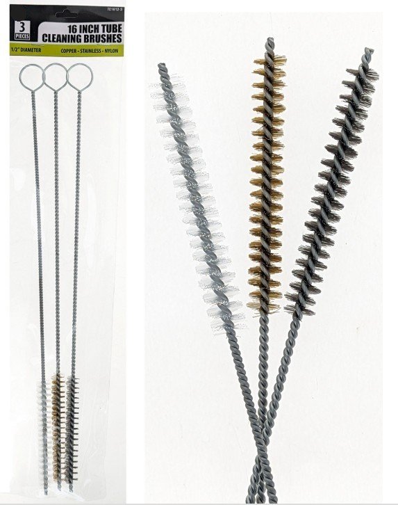 3-Piece Set- 16″ (1/2″ Diameter) Tube Cleaning Brushes Copper/Stainless/Nylon, Sold in Units of 12