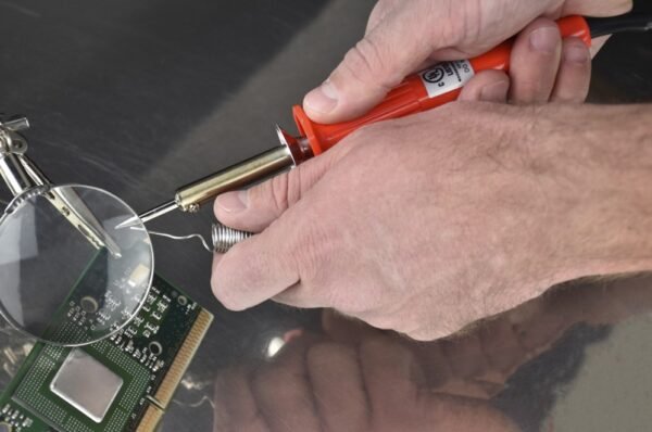 - Soldering Stand: Keeps the heated tip elevated and away from surfaces