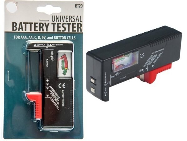 Universal Battery Tester compatible with AAA, AA, C, D, 9V, and Button Cell Batteries, Sold in Units of 24